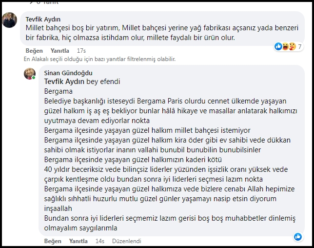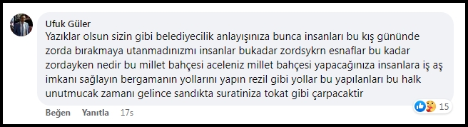 Bergama Belediyesi tarafından yayınlanan "Kamuoyu Duyurusu" başlıklı açıklamaya vatandaşlar tarafından da tepki yağdı.