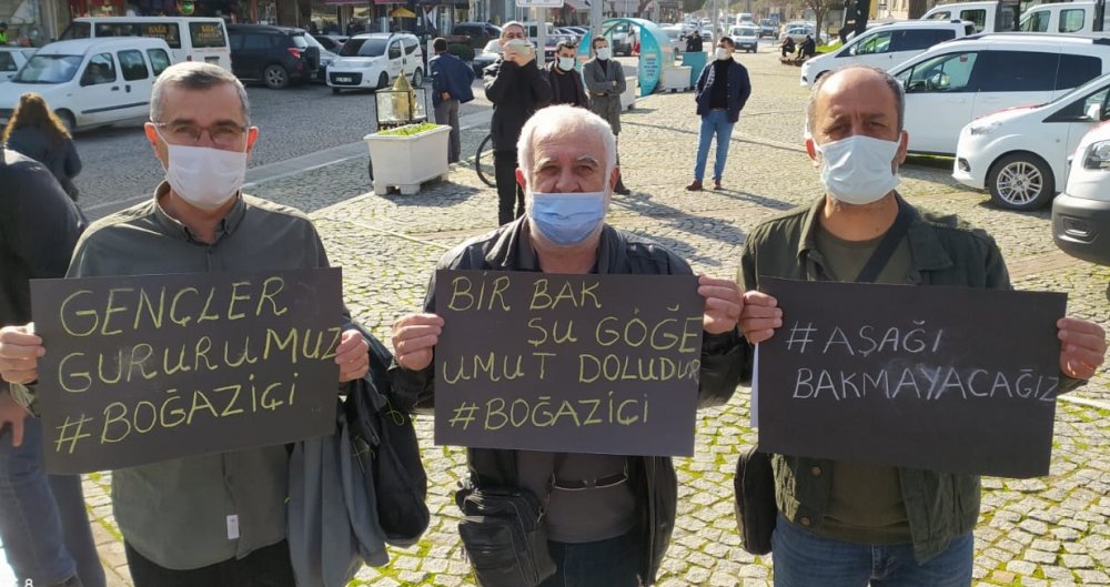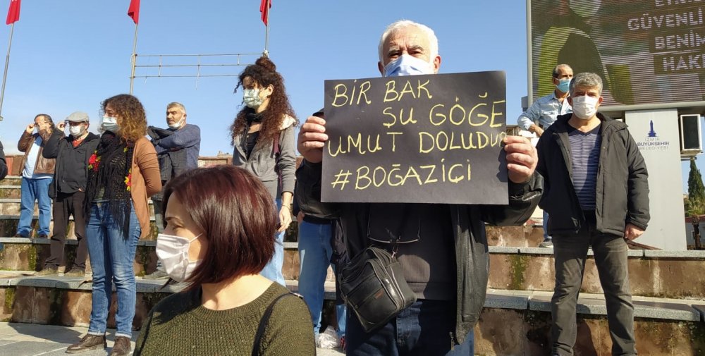 “Demokrasiden barıştan emekten insanlık ve insan haklarından yana olan herkesi başta Boğaziçi Üniversitesi olmak üzere tüm üniversitelere ve gençlerimize sahip çıkmaya çağırıyoruz. Boğaziçi üniversitesi öğrencileri akademisyenleri ve emekçilerinin bu saldırılar karşısında boyun eğmeyeceğini biliyoruz. Tüm Türkiye’de olduğu gibi Bergama Demokrasi Platformu olarak bir kez daha onların yanında olduğumuzu ilan ediyoruz. Diyoruz ki: göğe bakacağız, yıldızlara bakacağız, güneşe bakacağız geleceğe bakacağız, aydınlığa bakacağız, bilime bakacağız, barışa bakacağız, özgürlüğe bakacağız, kardeşliğe bakacağız, adalete bakacağız ama asla aşağı bakmayacağız! Bu abluka dağılacak” sözlerine yer verildi.