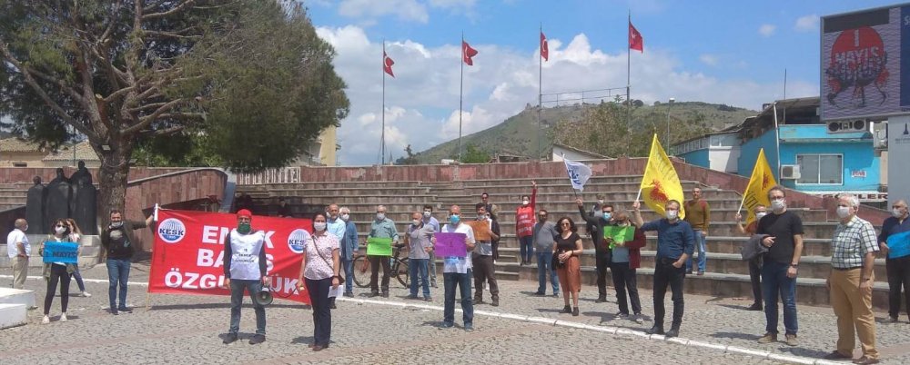 Basın açıklamasında ayrıca; “Ülkemizde de emekçiler salgın, yaşam ve çalışma koşullarının çok ağırlaştığı, işsizliğin rekor üzerine rekor kırdığı, krizin faturasının işçilere, emekçilere çıkarılması için ciddi adımların atıldığı, yandaş konfederasyonla yapılan satış sözleşmesiyle kamu emekçilerinin sefalet ve açlık sınırında yaşam mücadelesi verdiği bir dönemde patlak verdi. İktidar gerekli tedbirleri zamanında almadığı gibi ‘çarklar dönsün’ diyerek fabrikalarda, inşaatlarda binlerce işçiyi ‘ya salgından ya açlıktan ölüm’ seçenekleri ile baş başa bıraktı. Kamu işyerlerinde ‘zorunlu çalışma’ alanlarını objektif olmayan kriterlerle ve karar süreçlerine sendikaları, emekçileri dâhil etmeden belirledi. Binlerce kamu emekçisi Covid-19’a yakalandı”