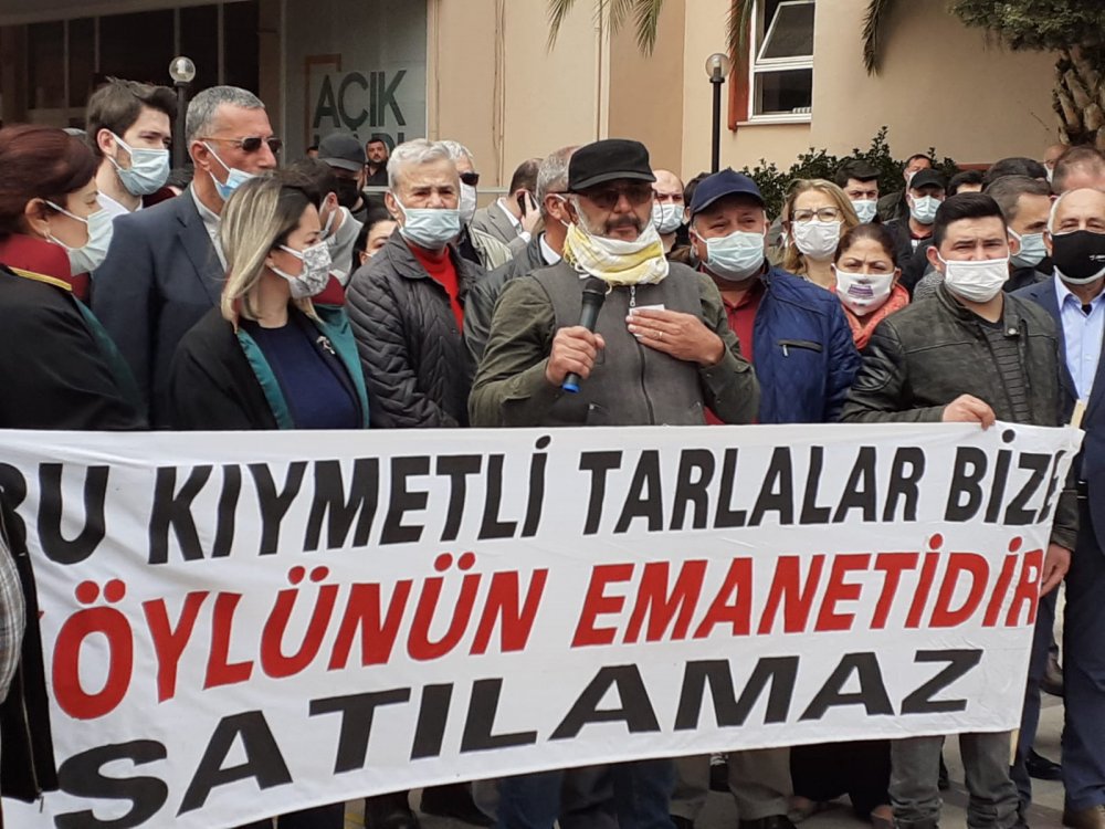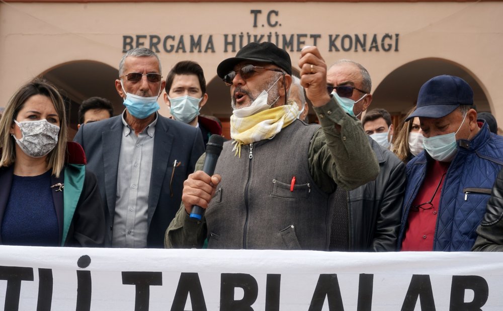 Köylüler, Bergama Belediyesi’nin AKP'li başkanı Hakan Koştu'ya tepki göstermiş, Arazilerin bir bölümünün, AKP’li bir belediye meclisi üyesinin çalışanı tarafından alındığı ortaya çıkmıştı.