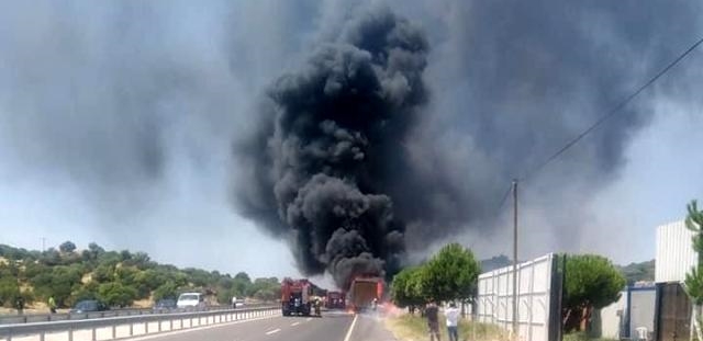 Bergama'da tır alev topuna döndü! 25 dönüm makilik alan kül oldu