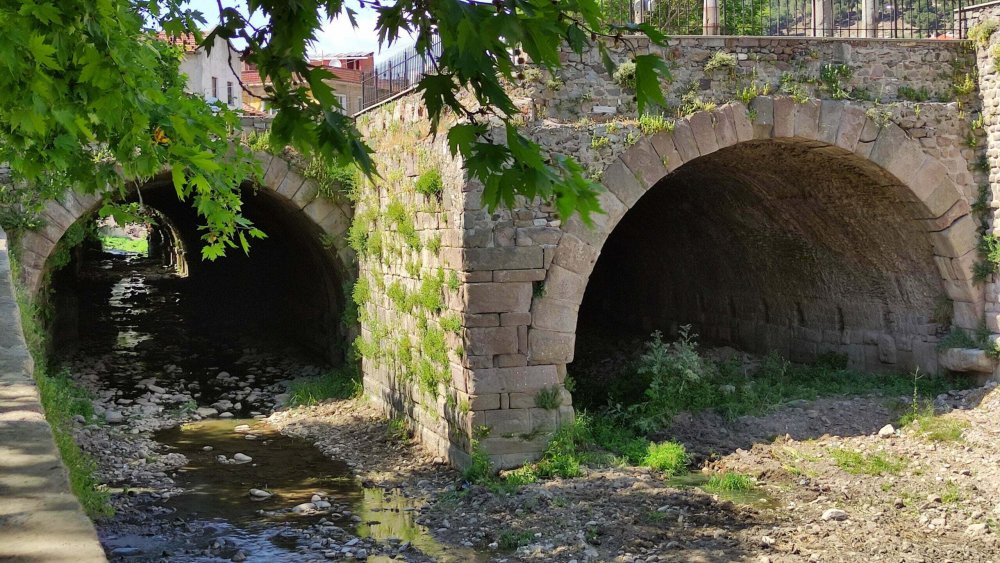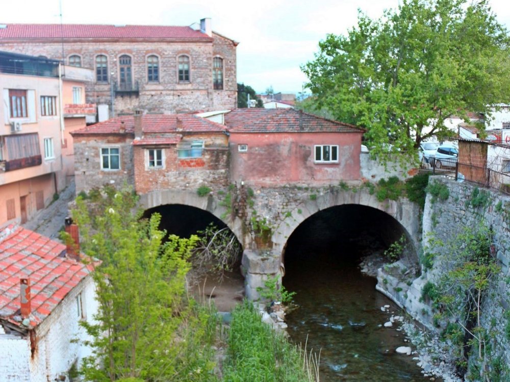 Burası Antik Pergamon kentinin yapılarındandır, Roma İmparatoru Adrianus döneminde inşa edilmiştir. 196 metre uzunlukta olup iki tünellidir. Günümüzde tünellerin üzerinde ilçe halk kütüphanesi binası da olmak üzere yerleşim mevcuttur ve alan Bergama’nın Selinus Çayıyla ayrılan iki yakasını, Kozak Yaylası bölgesini birbirine bağlamaktadır. Bu yerleşim doğrudan toprak zemin üzerinde olmadığından “ne yerde, ne gökte mahallesi” olarak adlandırılmaktadır. Evliya Çelebi tarafından da bu adlandırma kullanılmıştır.