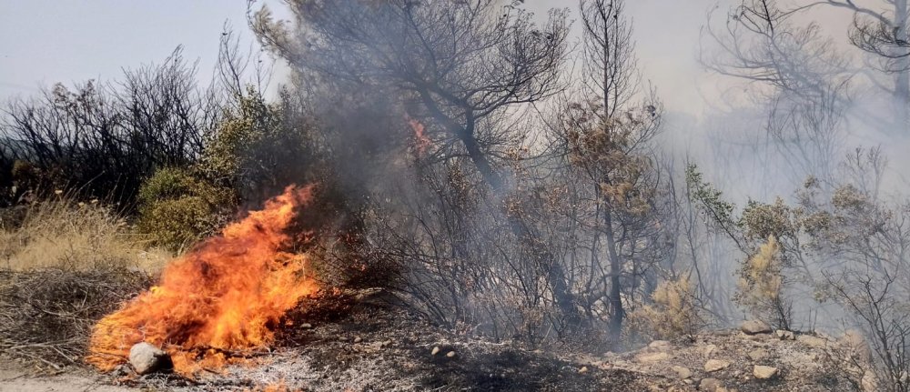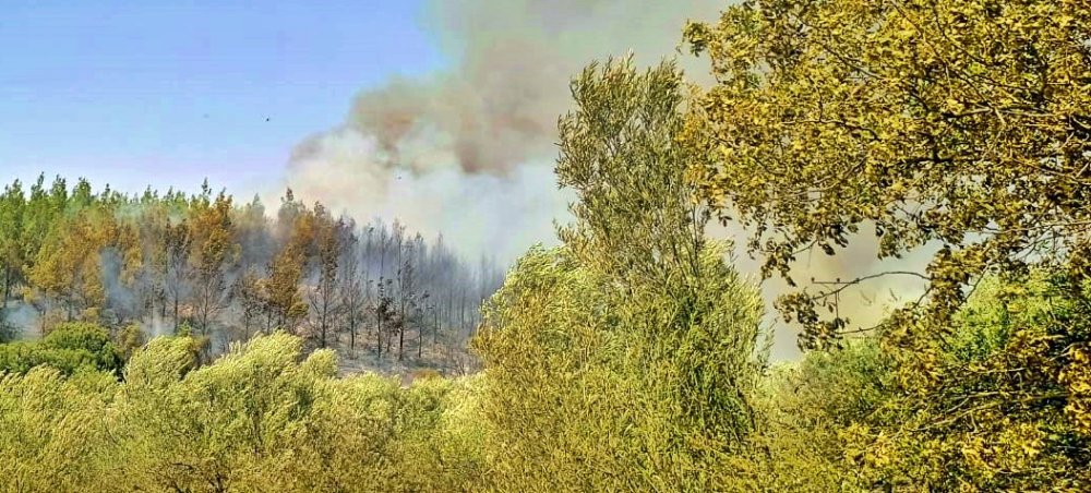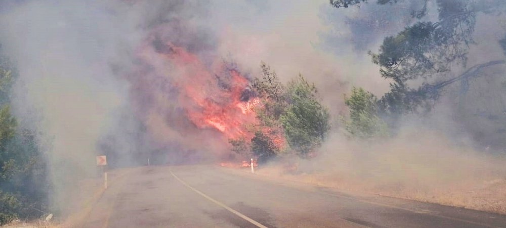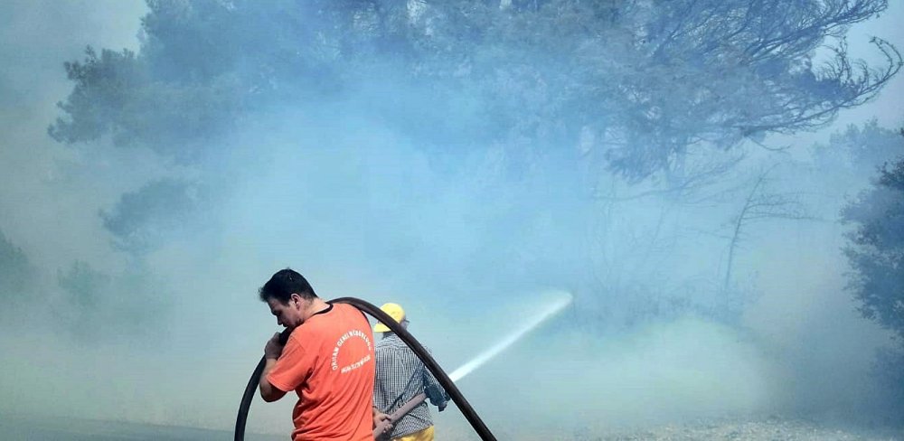 Öte yandan saman balya makinesinin alev alması sonrasında çıkan yangının ağaçlara sıçramasıyla büyüdüğü iddia edildi. Olayla ilgili soruşturma sürerken yangın kontrol altına alınmaya çalışılıyor.