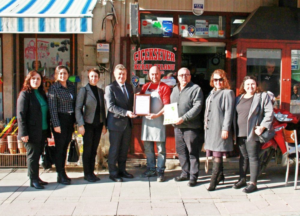 Köfte içeriğinin Coğrafi İşaret Tescili'ne uygunluğu incelendi ve işletme sahiplerine Bergama Köftesi'nin Coğrafi İşaret Tescilli olduğunu gösteren, iş yerlerinde kullanabilecekleri belge teslim edildi.
