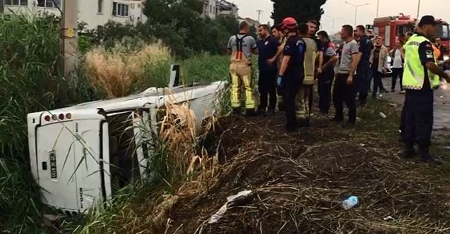 İzmir'in Bergama ilçesinde şiddetli yağışın etkisiyle devrilen cezaevi nakil aracındaki 10 askeri personel ile aracın sürücüsü yaralandı.