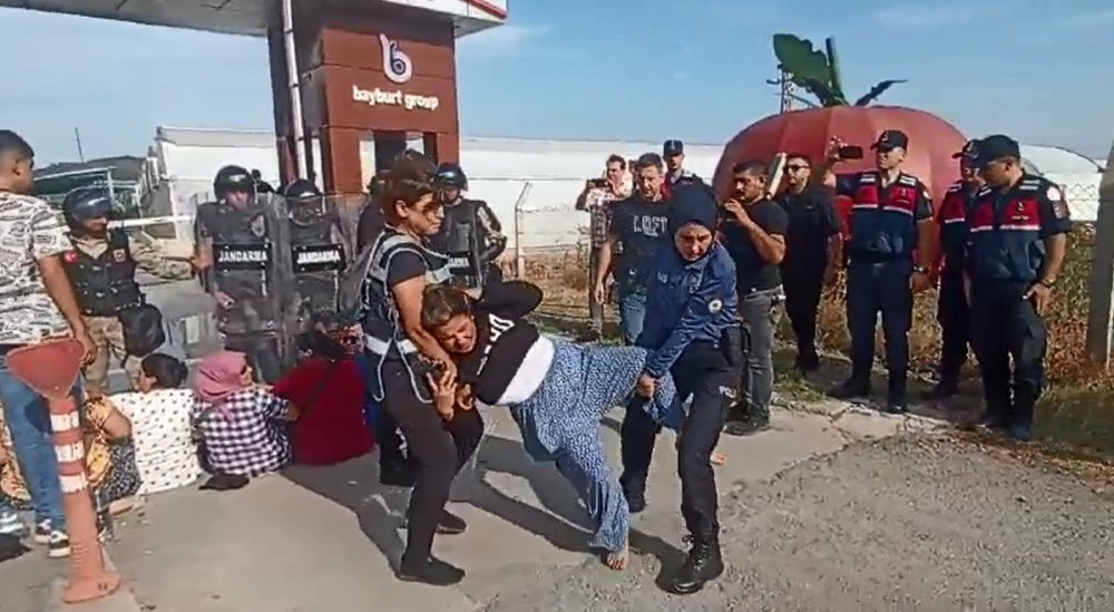 Jandarma "kapının önünü başaltmassanız sizi göz altına alacağım" deyince kadın işçiler "gücünüz bize yetiyor, Agrobay patronlarına ses çıkarmıyorsunuz. Siz kimin yanındasınız? Patronların mı? Hakkımızı alıncaya kadar bir yere gitmeyeceğiz" dediler.