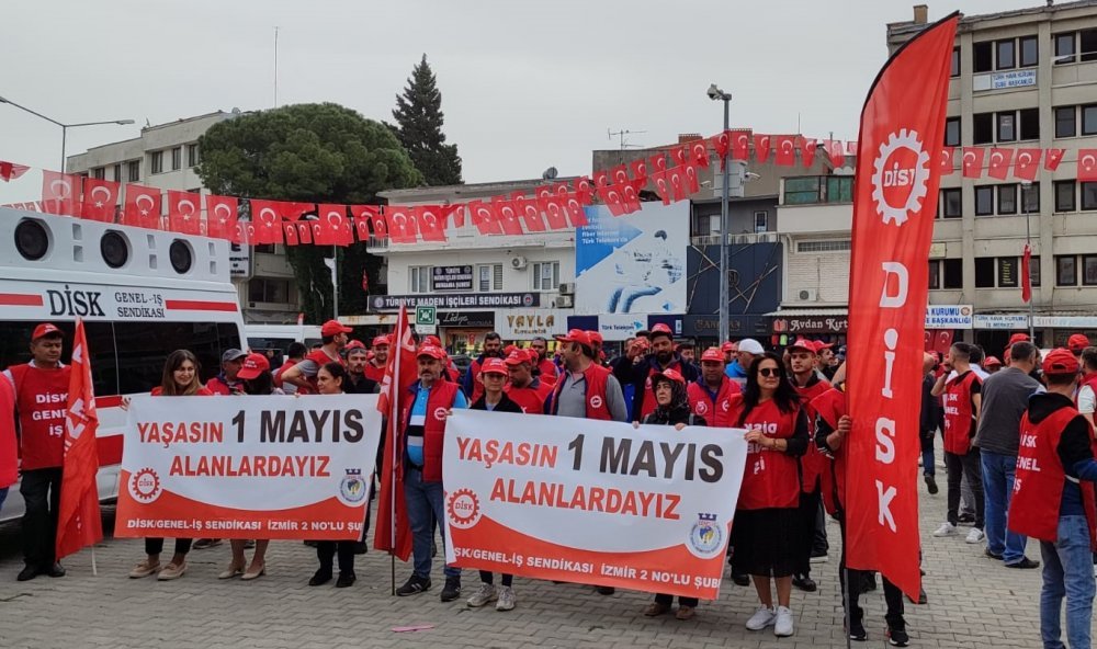DİSK'e bağlı Genel-İş 2 No’lu şubeye bağlı Bergama Fen İşleri, Mezarlıklar, İZSU, Yerel Hizmetler ve İlaçlama birimlerinde çalışan işçiler, Cumhuriyet Meydanı'nda basın açıklaması yaparak talepler için 1 Mayıs’ta alanlarda olma çağrısı yaptı.