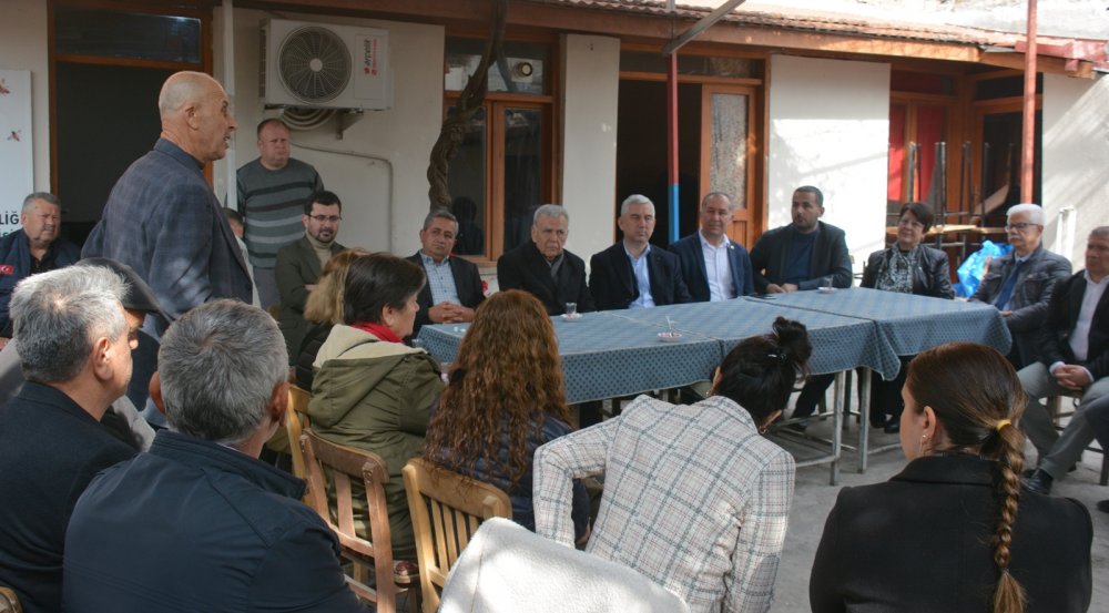 Toplantı salonunda muhtar ve çiftçilerle yapılan toplantıda konuşan Aziz Kocaoğlu; “Türkiye’de ekonominin durumu belli. Sürekli borçlanan bir toplum olduk. Üretenden çok tüketim toplumu olduk. Bir belediye başkanı kenti, belediyenin kıt olanakları ile de olsa güveni, birliği, beraberliği, dayanışmayı sağlayarak kalkındırabilir. Biz bunun örneğini İzmir’de gösterdik. Bakırçay’da da çok önemli işler yaptık. Tanju Çelik’in de kazanınca önemli işlere imza atacaktır” dedi.