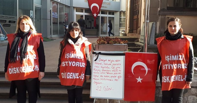 Bergama Belediyesi tarafından işten çıkarılan 3 kadın işçi Gonca Çetin, Nazlı Deniz Tan ve Alev Çakır’ın belediye önünde sürdürdükleri hak arama eylemleri Cumhurbaşkanı Recep Tayyip Erdoğan’ın ilçeye gelmesi ve güvenlik önlemleri nedeniyle 1 hafta yasaklanmıştı. Bergama Kaymakamlığı tarafından getirilen yasağın kalkmasının ardından 3 kadın işçi belediye önündeki eylemlerini yeniden başlattı.