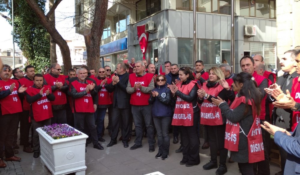 Bergamalı 3 kadın işçiye DİSK Genel-İş İzmir 1 ve 3 No’lu şube işçileri de destek verdi. Destek sırasında İzmir 1 Nolu Şube Başkanı Engel Topal herkesi bir dakikalık saygı duruşuna davet etti. Ardından İzmir 3 Nolu Şube Başkanı Faruk Saral tarafından basın açıklaması okundu. Basın açıklamasında ise Bergamalı 3 kadın işçiye desteklerinin artarak devam edeceğini söyledi.