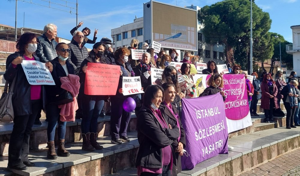 Cumhuriyet Meydanı’nda toplanan ve ellerinde “Kadına Yapılan Şiddet Suçtur”, “Erkek Adalet Değil Gerçek Adalet”, “İstanbul Sözleşmesi Yaşatır”, “Yargıda Cinsiyetçi Kararlara Son” yazılı dövizler taşıyan platform üyeleri; “İstanbul Sözleşmesinin fesih kararına karşı isyandayız!", "Her türlü yasağa ve baskıya karşı isyandayız!", "Her gün katledilen kadınlar için isyandayız!" sloganları attılar.
