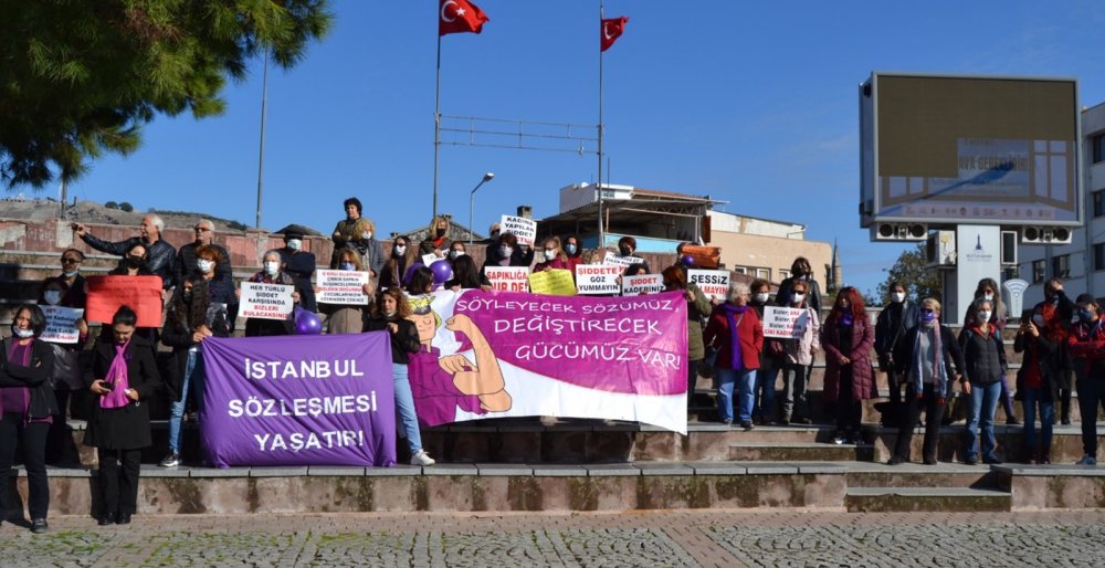 Bergama Demokrasi Platformu Kadın Komisyonu, 25 Kasım Kadına Yönelik Şiddete Karşı Uluslararası Mücadele Günü'nde; "İşsizliğe, yoksulluğa, güvencesizliğe, gericiliğe, tacize, tecavüze, istismara, katliamlara ve savaşlara karşı eşit ve özgür bir toplum için isyandayız!” dedi.