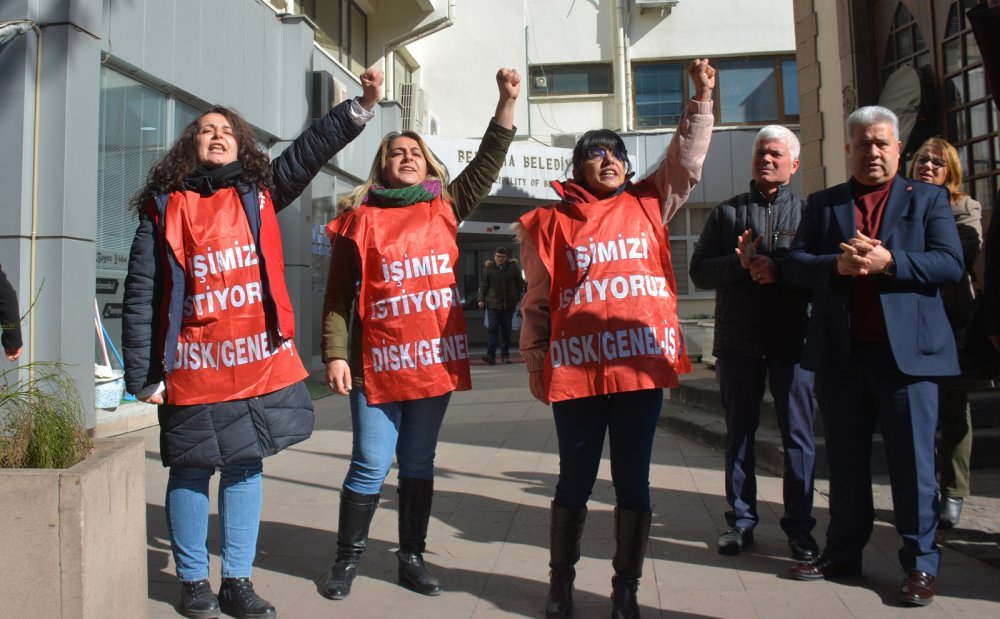 Çalışanlarına “mobbing”, “sürgün”, “işten çıkarma” ve “baskı” haberleriyle sürekli gündeme gelen AKP’li Bergama Belediyesi’nin işten çıkardığı 3 kadın çalışan üzeri “İşimi istiyoruz” yazılı yeleklerle, belediye önünde protesto gösterisinde bulundu.