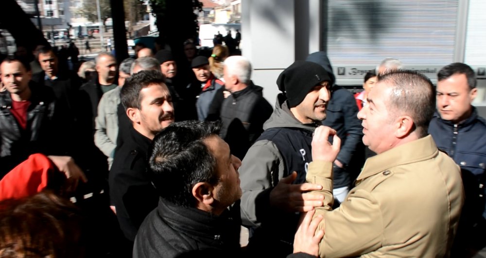 Yapılan basın açıklaması sırasında bir kişi kalabalığın içine girerek barışçıl eylemi sabote etmek istedi. Polis uzaklaştırdı. Ardından CHP İlçe Örgütü tarafından belediye önüne siyah çelenk bırakıldı. Siyah çelenk belediye içerisinde bir takım kişilerle içeri alınarak yere atılınca işten çıkarılan kadınlardan Alev Çakır’ın babası Durmuş Çakır duruma müdahale etmek istedi. Çelengin alınmaması gerektiğini ifade eden Durmuş Çakır burada bulunan AKP'li bir grup tarafından tartaklandı. Olay polisin müdahalesi ve işten çıkarılan 3 kadın çalışanın müdahalesi ile yatıştırıldı.