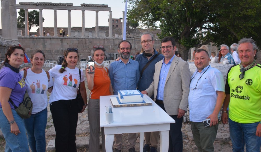 İzmir Büyükşehir Belediye Başkanı Tunç Soyer, Bergama'nın önceki dönem Belediye Başkanı Mehmet Gönenç, Yazar Ahmet Ümit, Arp Sanatçısı Şirin Pancaroğlu ve Bergama Belediyesi’nin ilk UNESCO birimi kadrosunda bulunan, Alan Başkanı Yaşagül Ekinci, Arkeolog Bülent Türkmen ve Mimar Fatih Kurunaz tarafından 7’inci yıl pastası kesildi. Pasta kesimine Bergama Belediyesi UNESCO Birimi eski çalışanı Nesrin Ermiş’te, Midilli’den telefon bağlantısıyla katıldı.
