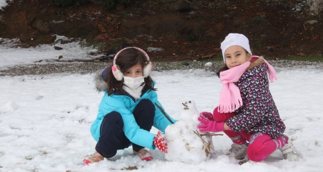 İzmir’in Bergama İlçesinde uzun süren kuraklığın ardından yağan yılın ilk karı sevinçle karşılandı.