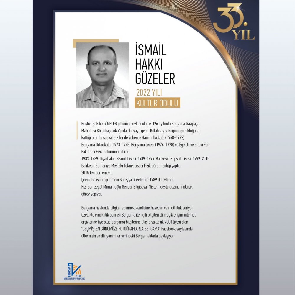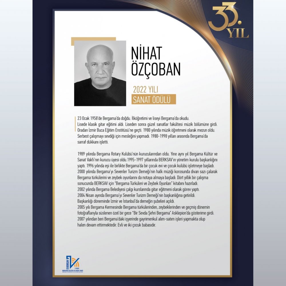 Buna göre; 2022 yılında BERKSAV Kültür Ödülü’nün “Geçmişten günümüze fotoğraflarla Bergama” adlı fotoğraf arşivi çalışmalarıyla İsmail Hakkı Güzeler’e, “Parşömen Fanzin” adlı Edebiyat dergisi ve eserleri ile Onur Çalı’ya, sanat ödülleri ise 2018- Haziran 2022 arasında İzmir Devlet Senfoni Orkestrası’nın Genel Müzik Direktörü, İTÜ Türk Müziği Devlet Konservatuarı öğretim üyesi Hakan Şensoy’a, Bergama Türküleri ve Zeybek oyunları üzerine yaptığı çalışmalardan dolayı Nihat Özçoban’a verilmesi kararlaştırıldı.