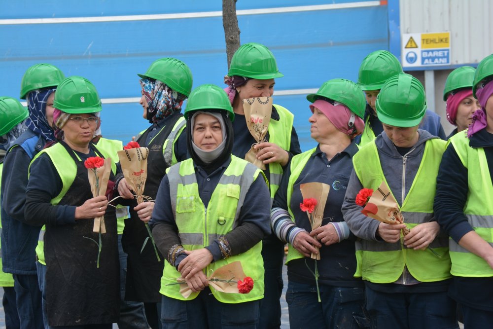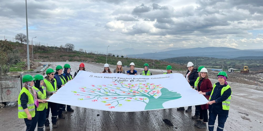Bergama Entegre Katı Atık Yönetim Tesisi’nde çalışan Bergamalı kadın işçiler, 8 Mart Dünya Emekçi Kadınlar Günü’nde farkındalık yarattı.