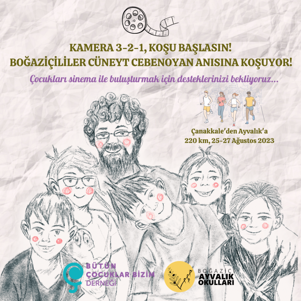 Bütün Çocuklar Bizim Derneği (BÇBD) tarafından başlatılan Cüneyt Cebenoyan Çocuk ve Sinema Buluşmaları’nın devam edebilmesi amacıyla düzenlenen bağış koşusu, aralarında Boğaziçi Üniversitesi mezunları, akademisyenleri ve öğrencilerinin yer aldığı Ayvalık Okulları projesinin desteğiyle düzenleniyor.