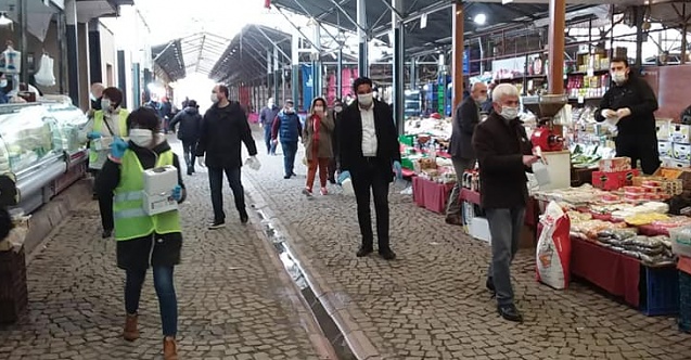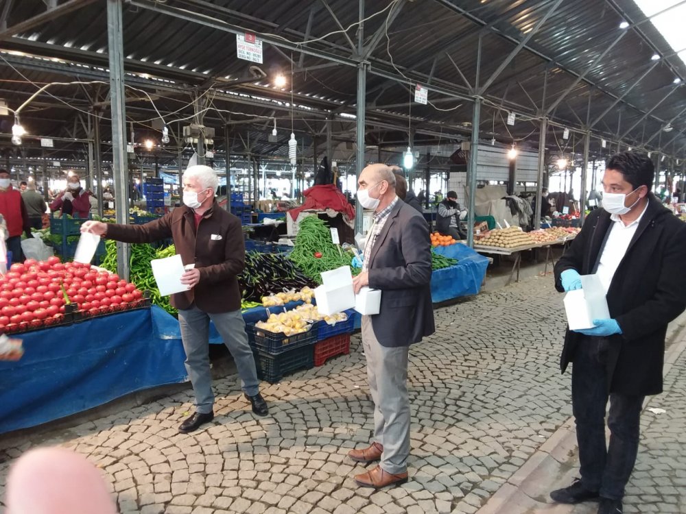 Tüm dünyada koronavirüs salgınına karşı alınan önlemler çerçevesinde Pazar yerlerindeki tezgahlar seyrekleştirildi. Pazaryerlerine maskesiz girilemeyeceği ile ilgili genelge yayınlanmasının ardından pazaryerlerine maskesiz giden vatandaşlar için İzmir Büyükşehir Belediyesi tarafından her ilçede olduğu gibi Bergama Kapalı Pazaryeri’nde de ücretsiz maske dağıtıldı. Pazaryerinde ki maske dağıtımına Bergama CHP İlçe Başkanı Mehmet Ecevit Canbaz, Büyükşehir Belediyesi Meslis Üyeleri, Bergama Belediyesi Meclis Üyesi Ali Bor, Kadın Kolları Başkanı Figen Günal ve Bergama Yerel Hizmetler Müdürü Bektaş Bal da katıldı.