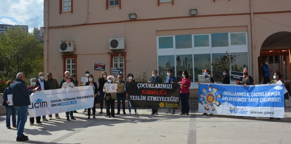 Veli Derneği Bergama Şube Temsilcisi Fikret Ali Parlas tarafından okunan basın açıklamasında; “Mahkemeler istismarcılara ağır ceza vermek yerine, ‘iyi hali görüldü’ diyerek tahliye ediyor, ceza indirimine gidiyor. Çandarlı’da 8 çocuğumuzu taciz eden ahlak yoksunu kişiye de aynı muamele yapıldı ve tahliye edildi. Buradan sesleniyoruz; Çandarlı’da tacize uğrayan 8 kız çocuğumuzun ve ülkemizin hemen her bölgesinde tacize, istismara, şiddete uğrayan çocuklarımızın geleceği için istismarcıların, zalimlerin karşısında duruyoruz” denildi.