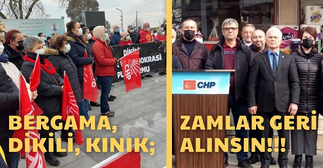 Cumhuriyet Halk Partisi (CHP) İzmir'in tüm ilçelerinde olduğu gibi Bergama, Dikili ve Kınık'ta akaryakıt ve elektrik başta olmak üzerine yapılan tüm zamları protesto etmek için eş zamanlı basın açıklaması düzenledi. “Yoksullukla mücadele eden milyonlarca insanımız sadece kira, fatura ve vergi ödeyebilmek için çalışmaktadır” denilen açıklamalarda zamların geri alınması talep edildi.