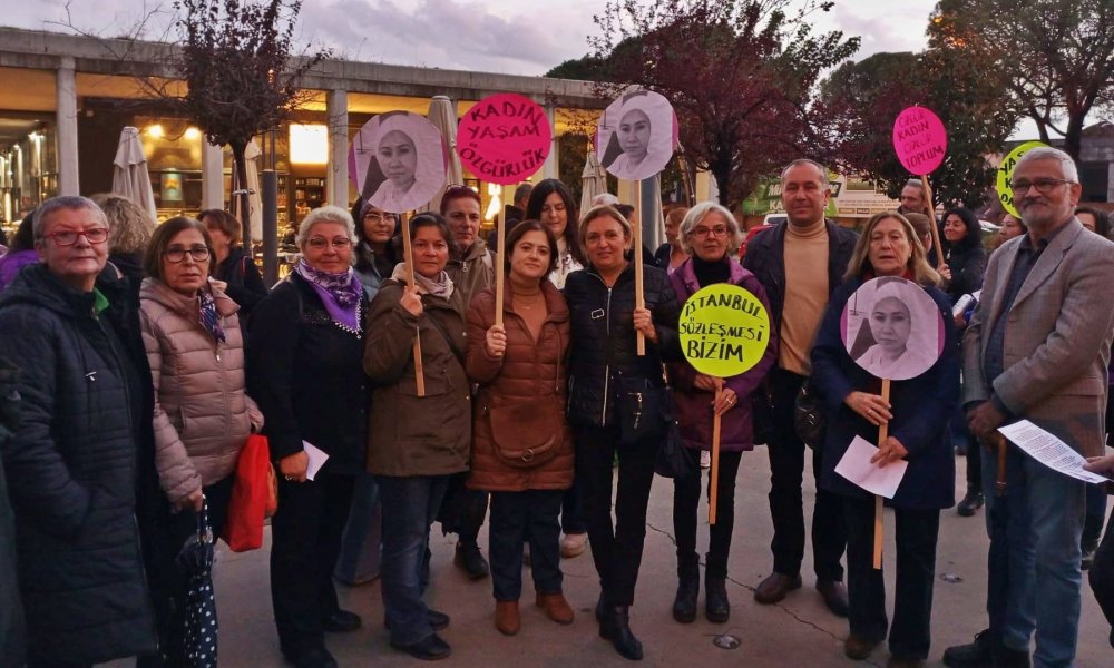 Basın açıklamasında ayrıca; “Adında ‘adalet’ olan AKP Hükümeti’nin yönettiği ülkemizde her gün en az iki kadın katlediliyor. Kadın cinayetlerini sadece ‘sayı’ olarak değerlendiren iktidar, çarpıttığı verilerle şiddetin azaldığını iddia ediyor. Hayattan koparılanın bir evlat, bir anne, bir abla, bir kardeş, bir arkadaş, bir dost olduğu gerçeği yok sayılıyor. Cinayetlerin üzeri ‘şüpheli kadın ölümü’ denilerek kapatılmak isteniyor. İstismara uğrayan çocuğun davasında ‘çocuğun rızası’ndan bahsediliyor. Kadına ve çocuğa yönelik şiddet uygulayanlar cezasızlık politikası ile ödüllendiriliyor. Kırmızıçizgimiz olan İstanbul Sözleşmesi hukuksuzca feshediliyor. 6284 Sayılı Şiddet Yasası’na göz dikiliyor. Cumhuriyetin biz kadınlar üzerindeki en önemli kazanımlarından olan Medeni Kanun budanmaya çalışılıyor. Kadının insan haklarının en büyük güvencesi olan laik düzen büyük bir tehdit altında"