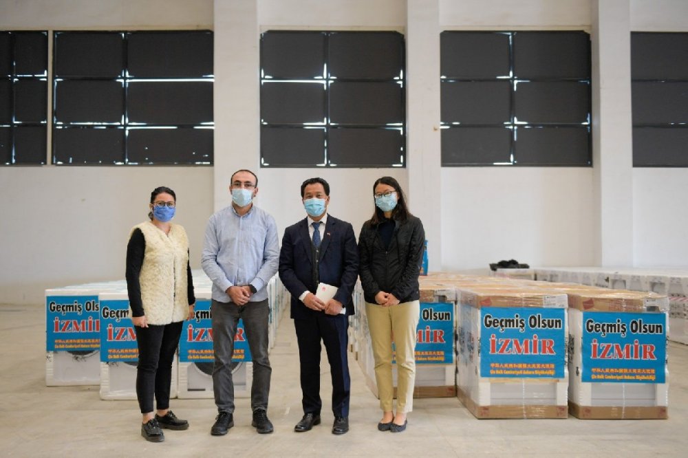 30 Ekim'de 6.9 büyüklüğünde meydana gelen depremin ardından Çin’in Ankara Büyükelçiliği, İzmir dayanışmasına katkıda bulunmak amacıyla 20 bin ABD doları değerinde yardım malzemesi bağışında bulundu. Çin halkına adına İzmirli depremzedelere dağıtılmak üzere alınan 51 çamaşır makinesi ve 51 bulaşık makinesi İzmir Büyükşehir Belediyesi görevlilerine teslim edildi.
