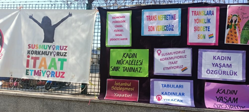 "Muhafazakar politikalarla kimi ve neyi muhafaza etmek istediklerini biliyoruz. Hayatımızı daraltan çemberlerinize, belirlediğiniz geleneksel rollerinize, ev ve aile içi duvarlarınıza, kutsal ailenize karşı isyandayız. Adaletin gecikmesinden, suçluların cezalandırılmamasından, mahkemelerin sürekli uzak tarihlere ertelenmesinden bıktık, usandık. Bu muhafazakar politikalar ve söylemler sürdükçe; tacize, tecavüze uğruyor; öldürülüyor; öz savunma yapınca da cezalandırılıyoruz. Tacize, tecavüze, kadın katliamlarına karşı sokakta, alanda, işte, evde mücadele etmekten vazgeçmiyoruz. Baskı ve zor yoluyla kadınları susturmaya çalışan erkek egemen sisteme, onun temsilcisi iktidarlara itaat etmiyoruz"