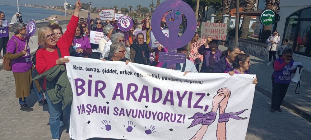 Dikili Kadın Platformu'nun 8 Mart dolayısıyla, hafta başından bu yana düzenlediği etkinlikler 2 Mart tarihinde başladı. Söyleşiler, film gösterimi, şiir ve müzik dinletisi ve Agrobay işçilerine destek eyleminin de yer aldığı bir dizi etkinlikle 8 Mart'ı kutlayan kadınlar, Dünya Emekçi Kadınlar Günü'nde Dikili Bülent Ecevit Meydanı'nda başlayan ve Atatürk Meydanı'nda son bulan kortejde "Bir Aradayız Yaşamı Savunuyoruz", "Yaşasın Kadın Dayanışması", "Kadın Cinayetleri Politiktir", "Kadın Kırımına Hayır", "Aileye Kul, Sermayeye Köle Olmayacağız", "Dünya Yerinden oynar Kadınlar Özgür Olsa", "Geceleri de Sokakları da Meydanları da Terk Etmiyoruz" sloganları eşliğinde yürüdü.