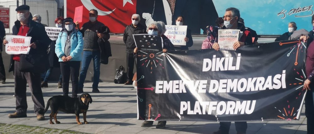 Dikili Emek ve Demokrasi Platformu, Boğaziçi Üniversitesi öğrencilerine yönelik gözaltıları protesto ederek, öğrencilerin derhal serbest bırakılmasını istedi.