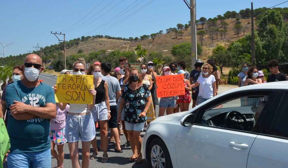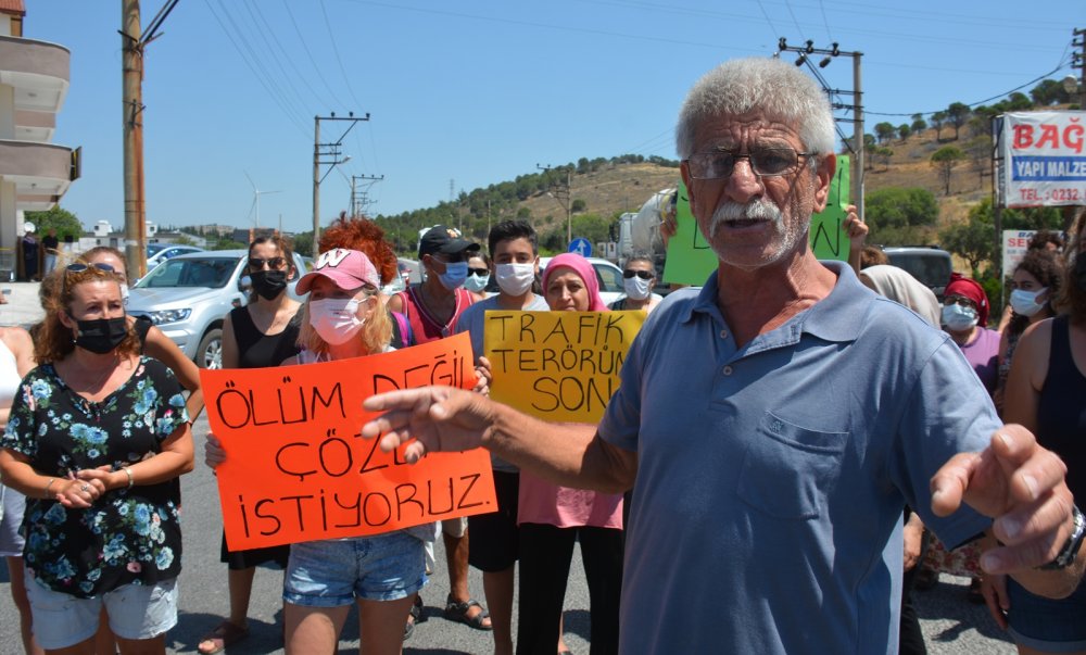 Nihal Çetin; “Çandarlı sakiniyim. Bundan iki yıl önce 17 yaşındaki genç bir oğlumuz, bahçe duvarında arkadaşıyla sohbet ederken hızla gelen bir araba çocukların ikisine birden çarptı. Aile birden dışarı fırladı, ancak ‘anne canım çok yanıyor’ diye diye çocuğumuz ailesinin önünde vefat etti. Ailenin tek çocuğuydu. Şuanda ikisi de perişan haldeler. Aynı yıl yine yan komşumuz 80 yaşındaki bir amca motosikletiyle giderken hızla gelen bir aracın altında kaldı. Bu yıl yine bir gencimiz yoğun bakımda. Denize gitmeye korkar olduk. Arkadan yol açıldı. En azından 4 ay, şu yaz sezonu bitinceye kadar bu yolu Dikili ayrımına kadar trafiğe kapatsınlar. Kazalar önlensin, sonra kış sezonunda tekrar açılsın” dedi.