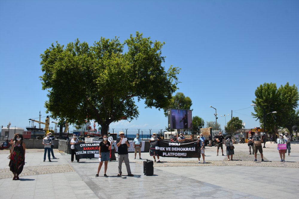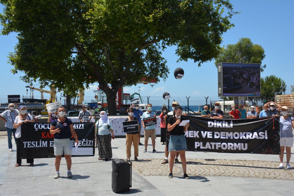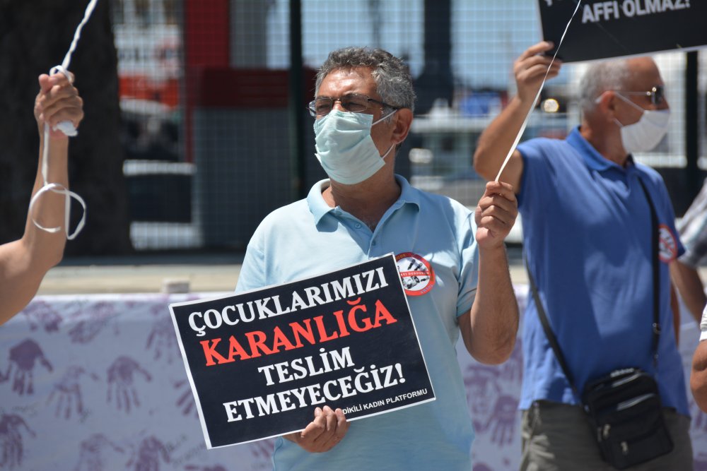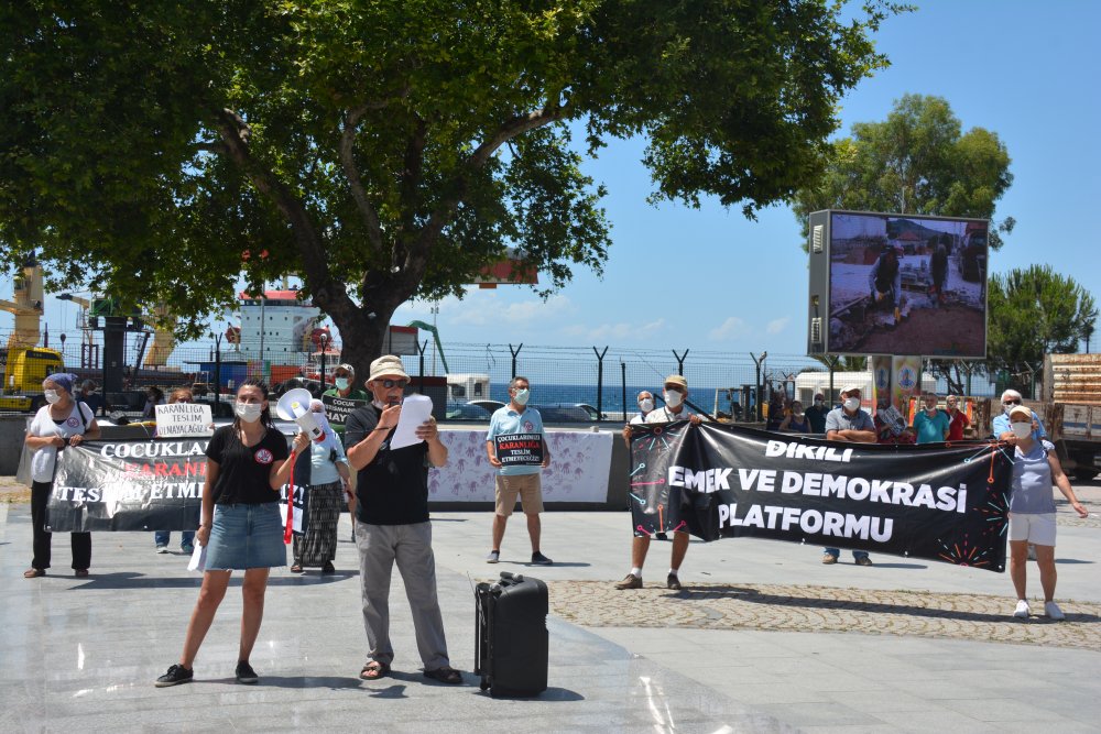 Covid-19 Salgını nedeniyle pandemi kurallarına uygun olarak gerçekleştirilen basın açıklaması Dikili Emek ve Demokrasi Platformundan Ayfer Budak, Ezgi Yalçınkaya, Hüseyin Öğe ve Pervin Çakıcı tarafından okundu. "Çocuk yaşta evlilik istismardır", "Laik eğitim istiyoruz", "Çocuk susmaz, sende susma"ve "Karanlığa teslim olmayacağız" gibi sloganlar atıldı.