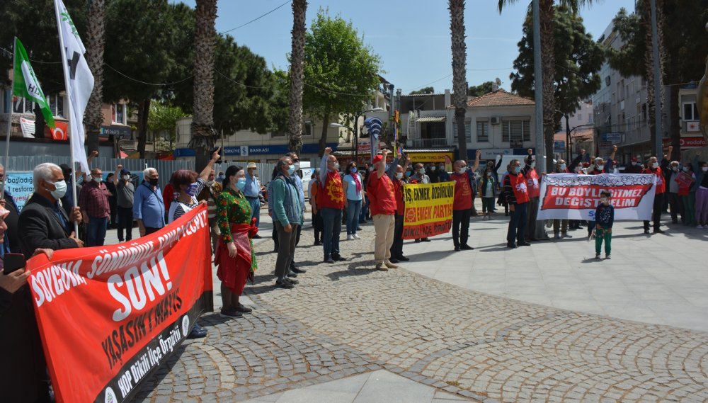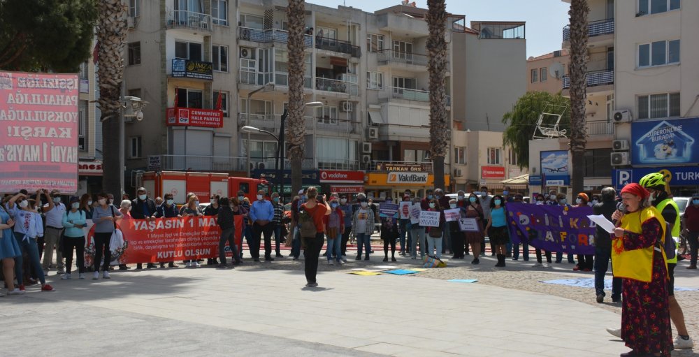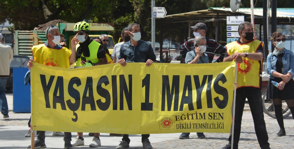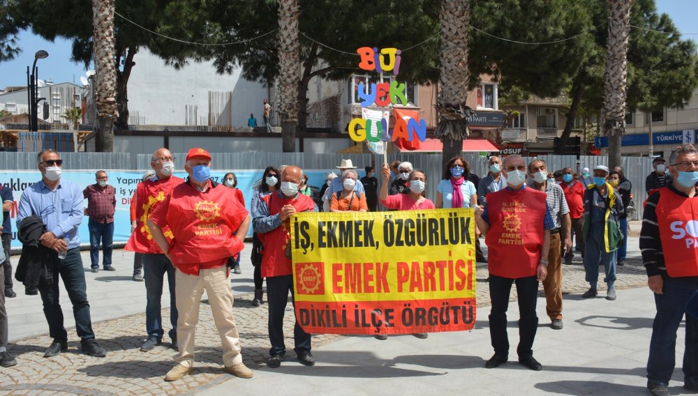 1 Mayıs’ın tam kapanma sürecine denk gelmesi nedeniyle bugün Dikili Atatürk Meydanı’nda da basın açıklaması yapıldı.