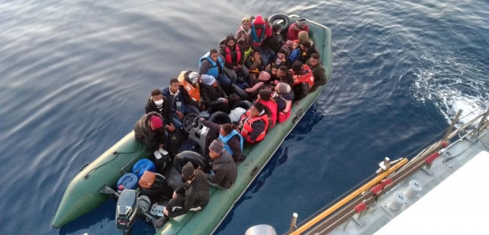 Makine arızası nedeniyle denizde sürüklenen lastik bot içerisindeki 28 kaçak göçmen kurtarıldı.