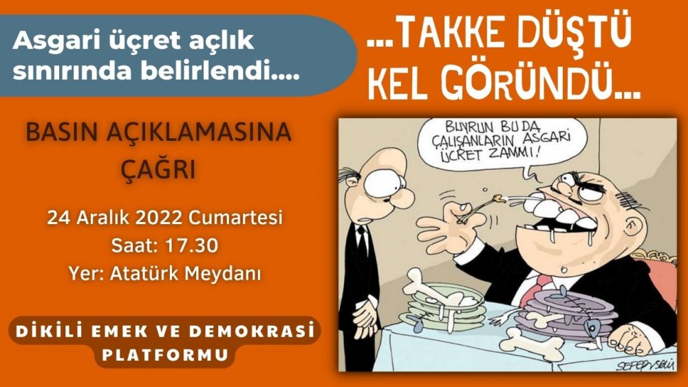 Asgari Ücret açıklandı, Dikili Emek ve Demokrasi Platformu ‘Takke düştü, kel göründü' başlığı ile basın açıklaması düzenledi.