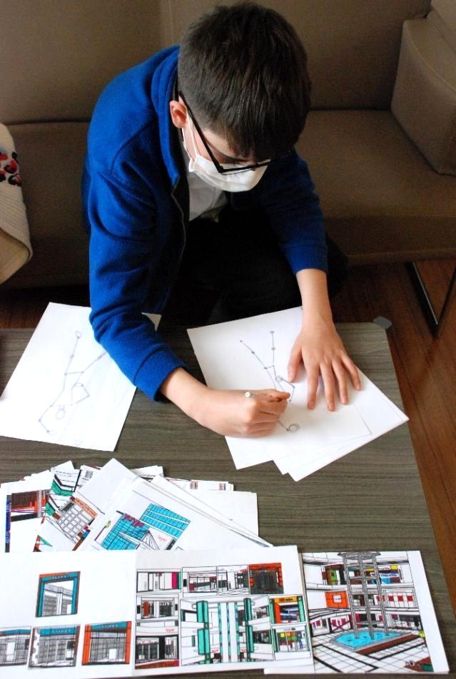 2.5 yaşında okumaya başlamayan, ailenin durumu fark etmesiyle 3 yaşında otizm tanısı konularak özel eğitime alınan 14 yaşındaki Ali Kerem Cemaloğlu, özellikle perspektif ve çizim yeteneği ile dikkatleri üzerine çekiyor.
