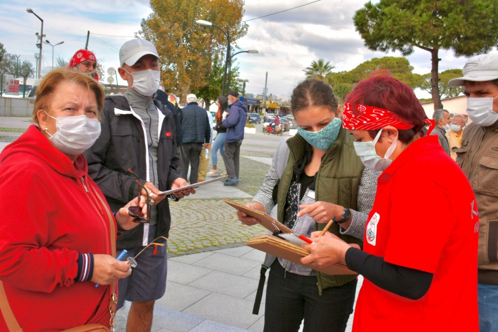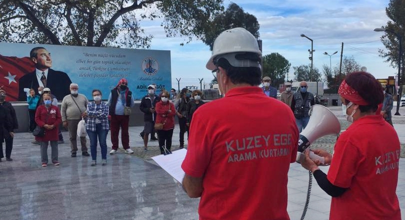 Dikili Atatürk Meydanı’nda Kuzey Ege Arama Kurtarma Derneği Başkanı Ajlan Alpay ile dernek üyesi Harika Özmen tarafından yapılan basın açıklamasına, Dikili Atatürkçü Düşünce Derneği ile vatandaşlar destek verdi. Yapılan açıklamada; “Havaların soğumaya başladığı günlerde evleri yıkılan, hasarlı olan ve korkudan giremeyenler kurulan çadırlarda barınmaya çalışıyorlar. Destek ve yardımlar ne kadar iyi olsa dahi normal yaşamlarına ve kayıplarına geri dönüş olmayacak. Enkazdan bir fotoğraf bile kurtaramayan aileler oldu” denildi.