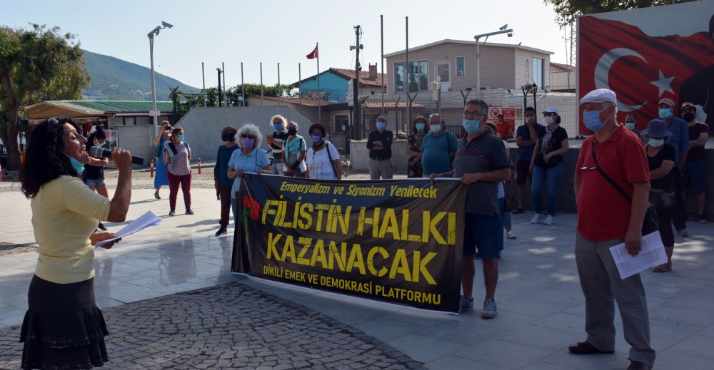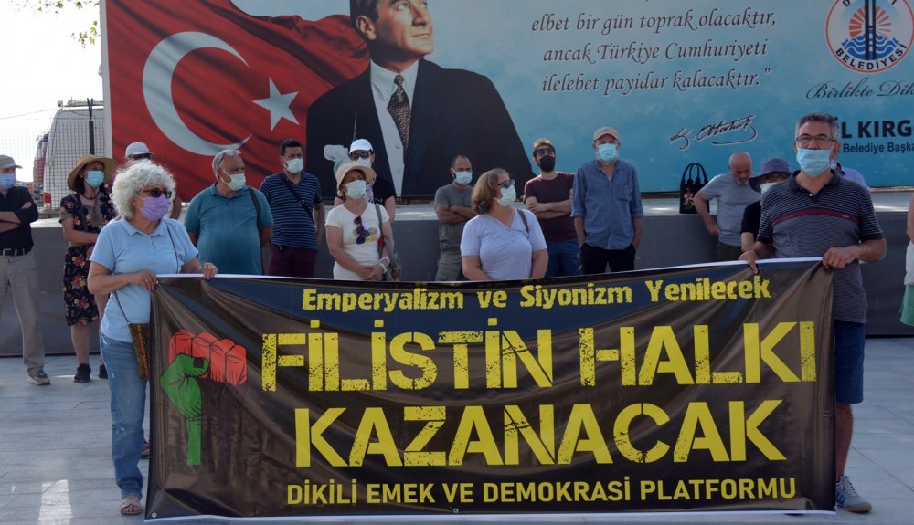 Dikili Emek ve Demokrasi Platformu, İsrail’in 10 Mayıs'tan bu yana Filistinlilere karşı düzenlediği kanlı saldırıları kınayan basın açıklaması düzenledi.