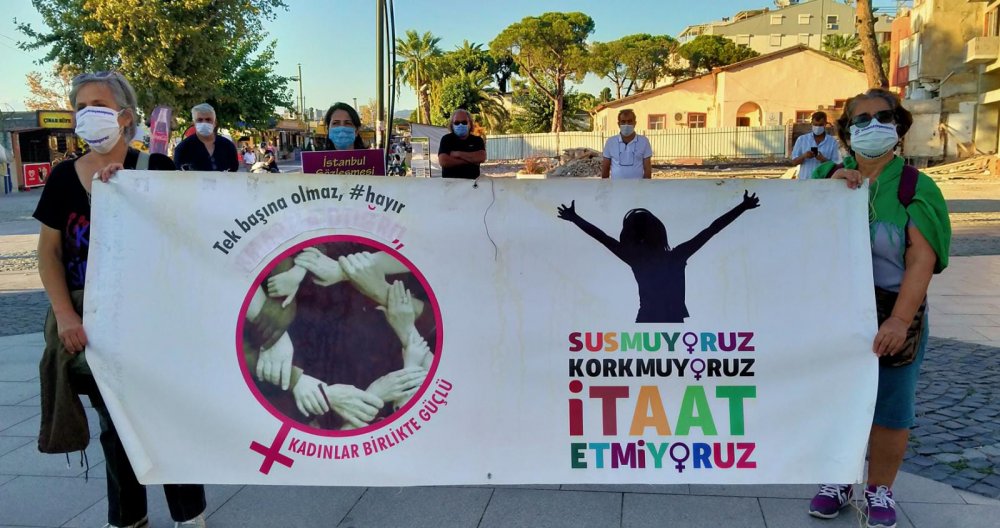 İktidarın İstanbul Sözleşmesi’nden çekilmek istemesine karşı aylardır mücadele eden kadınlar Meclisin açıldığı 1 Ekim Perşembe günü (bugün) İstanbul, İzmir, Adana, Ayvalık, Dikili’de basın açıklaması okudular.