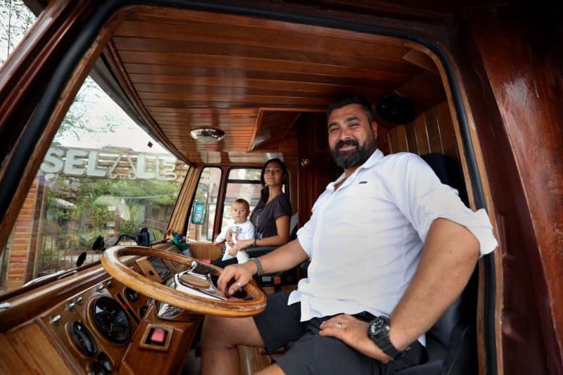 İzmir Dikili’de klasik otomobil, motosiklet ve deniz motoru tamiriyle uğraşan Serdar Bilâl ve eşi Nihan, üç küçük çocukla karavanda yaşıyorlar.