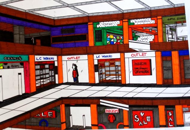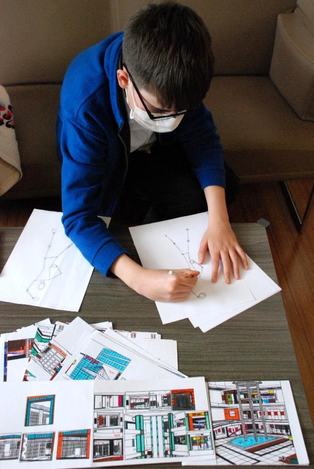 Alışveriş merkezi çizmeyi çok sevdiğini belirten Cumhuriyet Ortaokulu 8. sınıf tam zamanlı kaynaştırma öğrencisi Ali Kerem, "Ayrıca karikatür çizmeyi de çok seviyorum. Daha çok perspektif çalışıyorum. Ben gezdiğim zaman hep etrafıma bakıyorum. Oraları aklımda tutuyorum, düşünüyorum, internetten araştırma yapıp sonra da çiziyorum. Ben güzel sanatlar lisesinde okumak istiyorum. Başarılı olmak istiyorum. İleride mimar olabilirim" dedi.