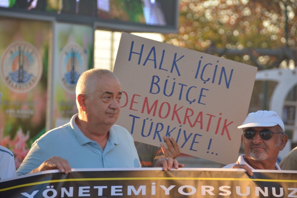 Platform üyesi Hüseyin Acar tarafından yapılan basın açıklaması öncesi Geçinemiyoruz” pankartı ile "Halktan emekten yana bütçe", "Zamlara alışmayacağız", "Akbelen yaşamak istiyor", "Ağacıma, toprağıma, suyuma dokunma", "Akbelen'e dokunma", "Bütçede kadının adı yok", "Savaşa değil, sağlığa bütçe" ve "Baskı sömürü ve mafya düzenine teslim olmayacağız" yazılı dövizler açıldı.