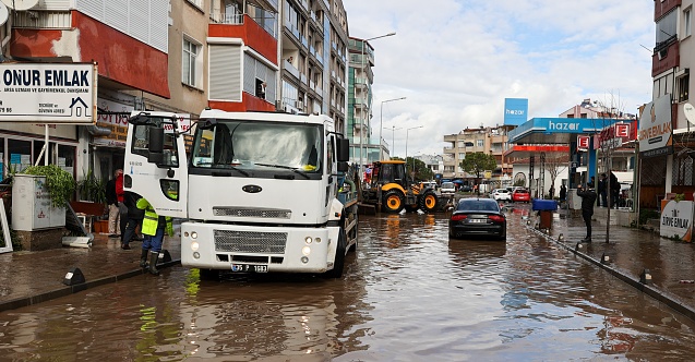 İlçe merkezindeki birçok sokakta suların yükselmesi nedeniyle yollar trafiğe kapatıldı.