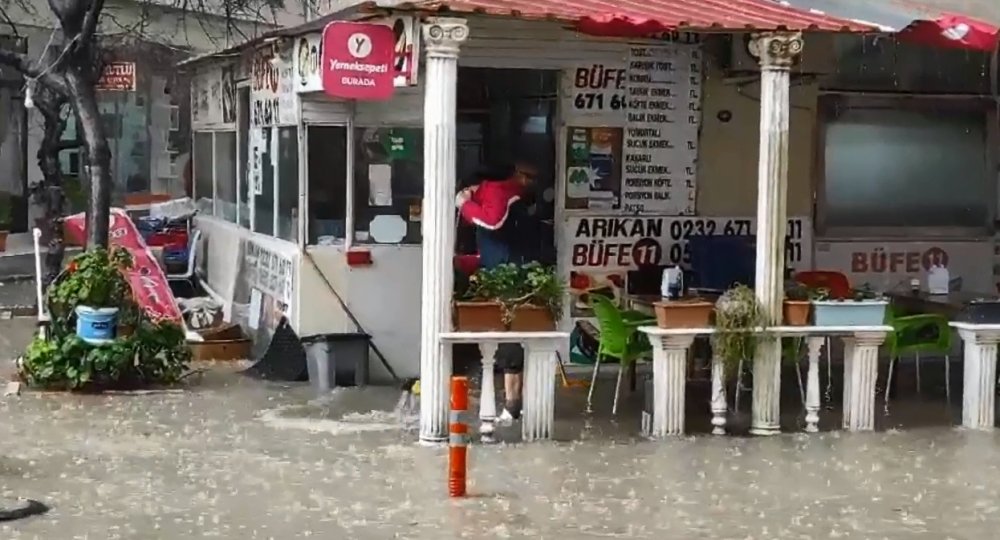 Dikili'de geceden bu yana aralıklı olarak şiddetini artıran sağanağın etkisiyle Sülüklü Deresi taştı. Derenin çevresindeki sokaklarda yükselen su nedeniyle bazı araçlar mahsur kaldı, çok sayıda ev ve iş yerini su bastı.