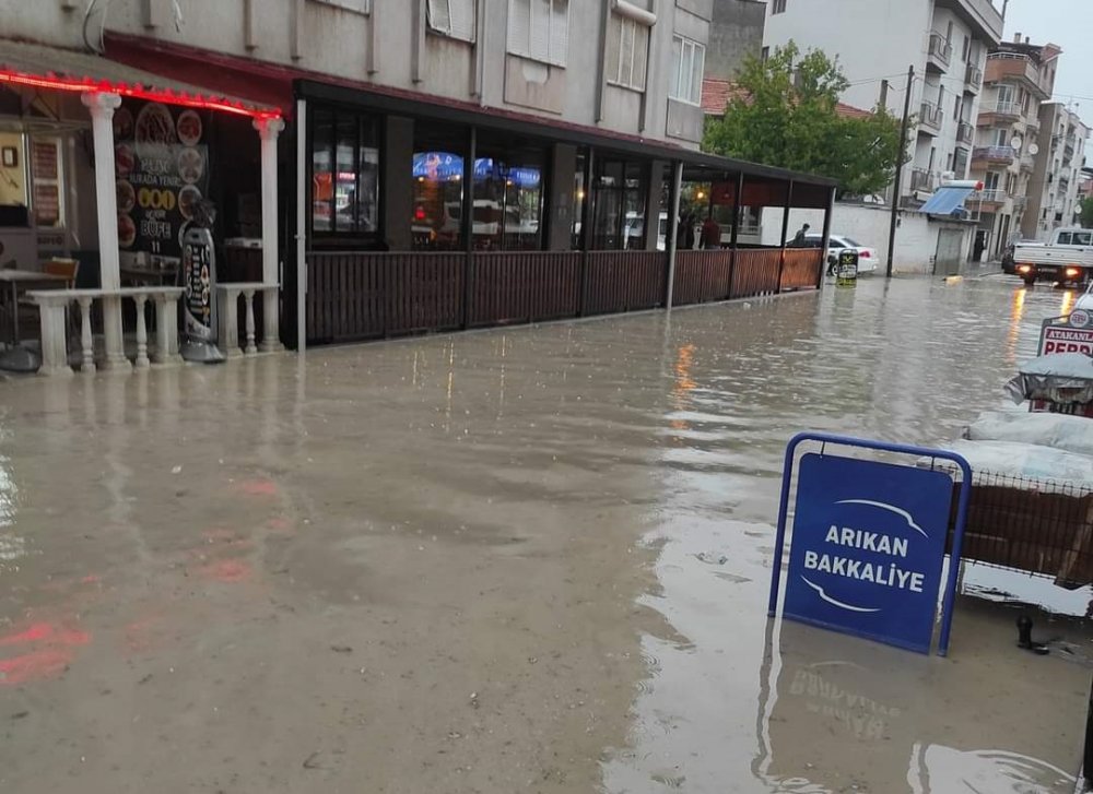 Dikili’de bugün yağan sağanak yağmur nedeniyle yolları ve iş yerlerini su bastı.