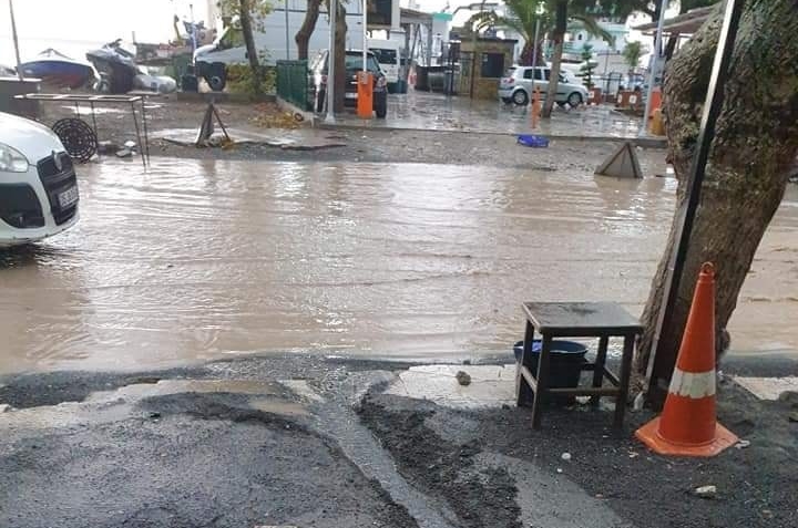 Dikili'de önceki gün ve bugün sabah saatlerinde başlayan ve gün boyunca ara ara yağan sağanak yağış nedeniyle yollar göle döndü, trafikte aksamalar meydana geldi, iş yerlerini su bastı.