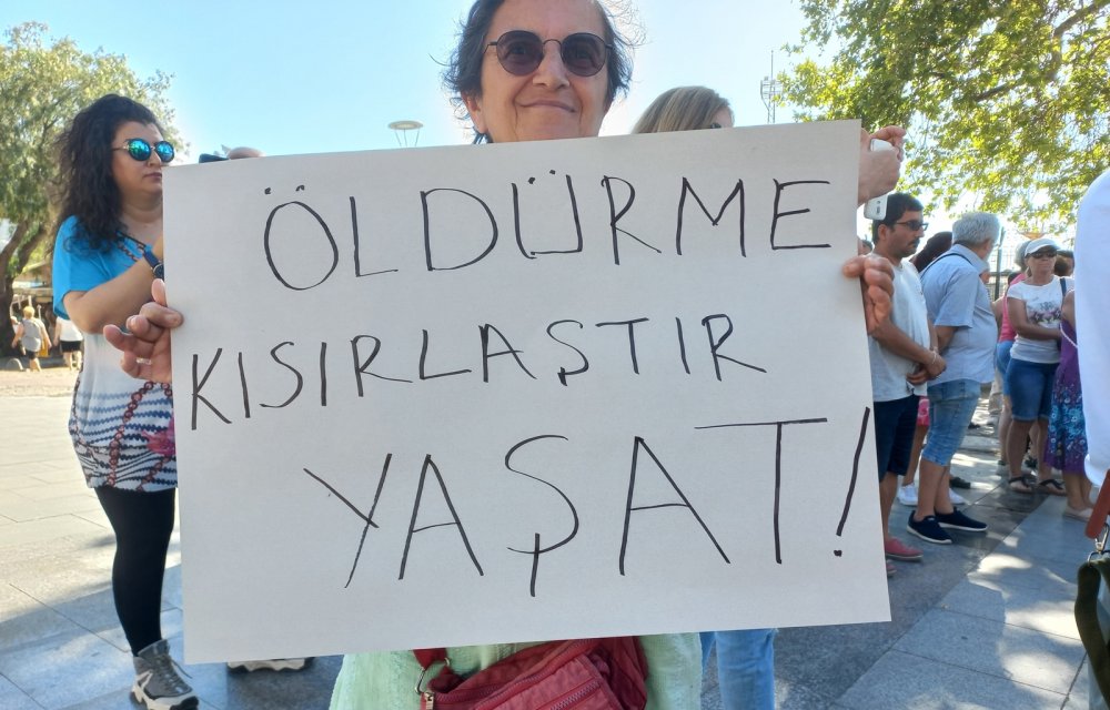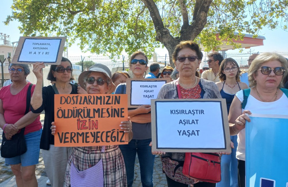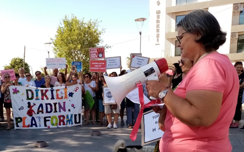 Sokak hayvanlarının uyutulmasına yönelik yasa tasarısına bir tepki Dikili’deki hayvan yaşam savunucularından geldi.