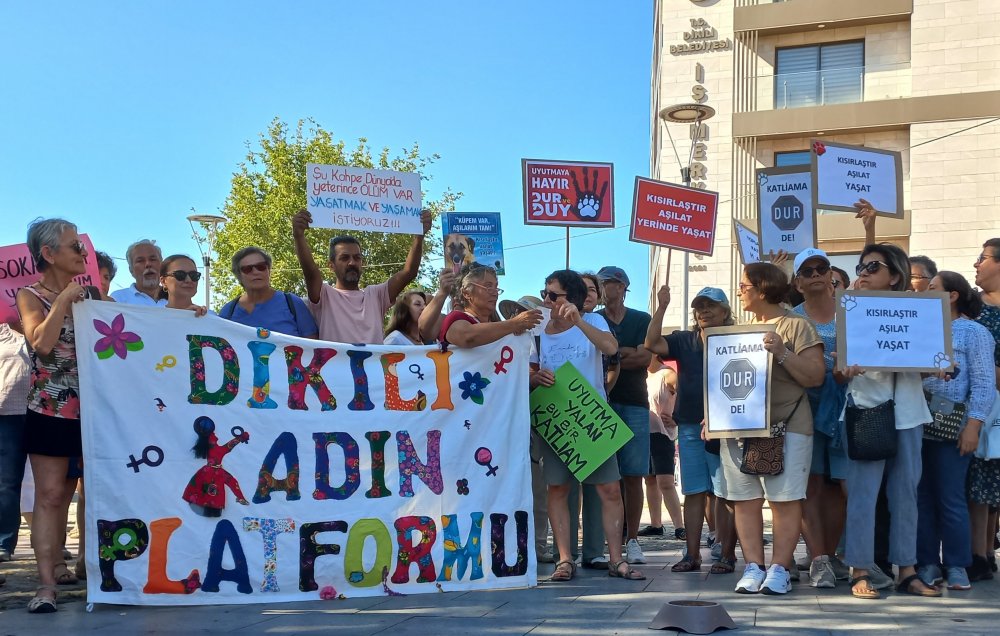 Sokak hayvanlarının öldürülmesine yönelik yeni yasa tasarısı tartışmaları sürerken, Dikili’de, konuya ilişkin bir basın açıklaması yapıldı.