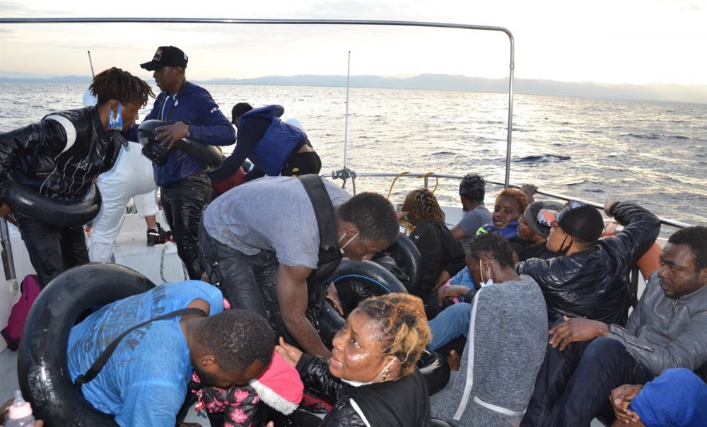 Türkiye Karasularına geri itilen sığınmacılar kurtarılarak karaya çıkarıldı.